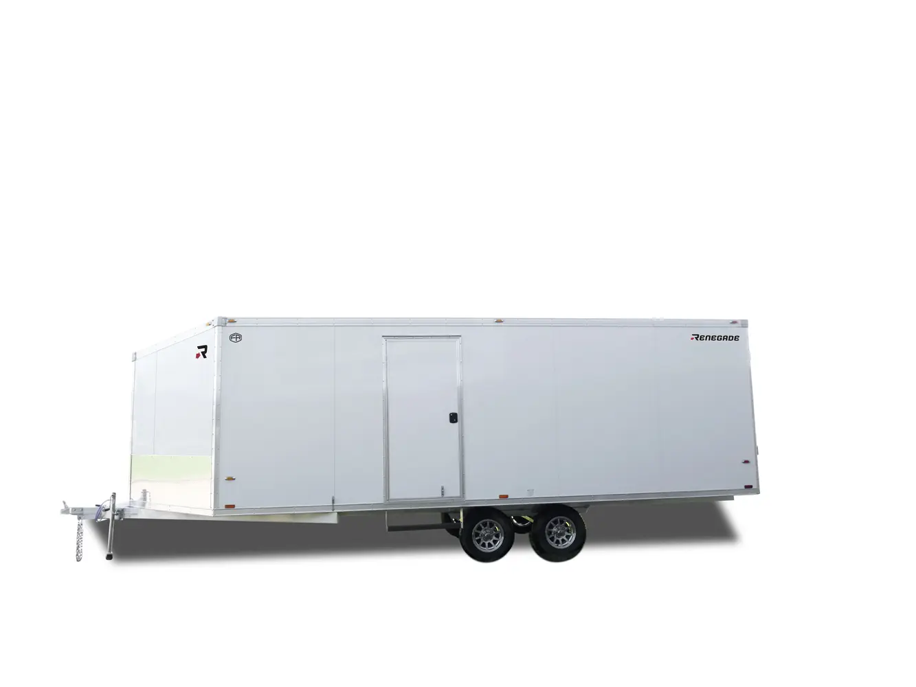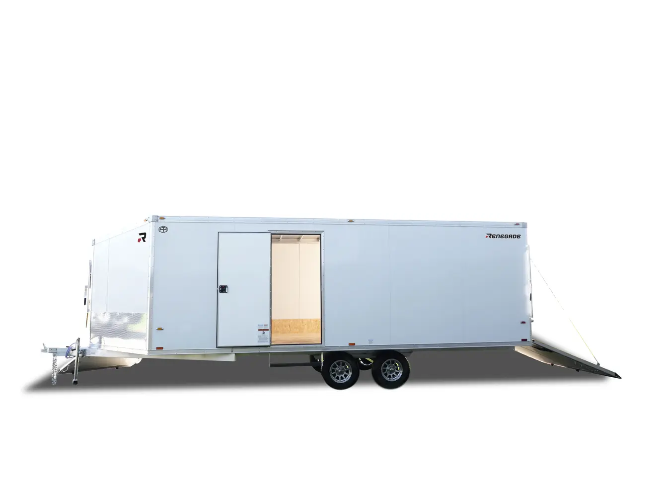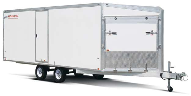 If 7 feet wide does not cut it for you then explore the Rance 8.5' Wide Enclosed Snow Trailer. They offer more room to store your payload and the wider front and rear ramp doors make it easier to enter and exit the trailer. The Renegade Model includes a 5-year warranty, aluminum rims, engineered flooring, stainless steel hinges, and a deluxe side door.